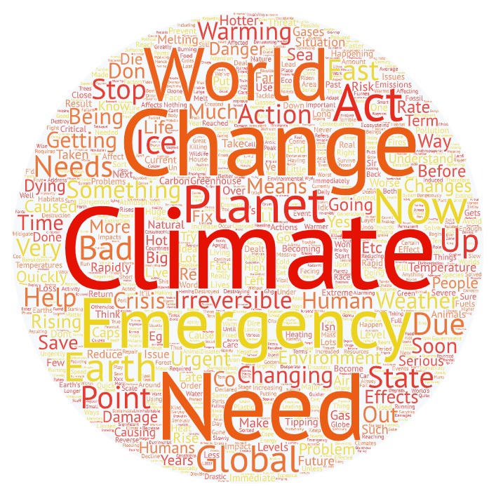 Add up to five words you think of when you think about the climate emergency.