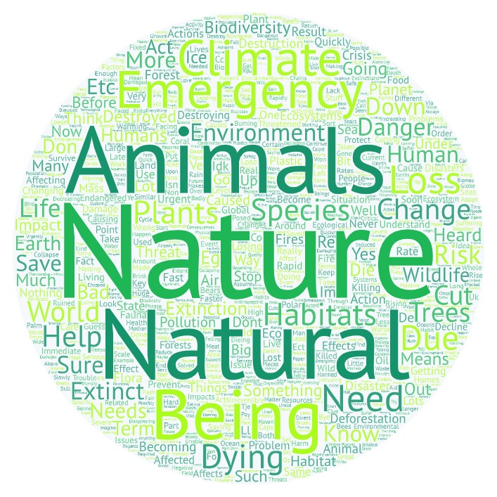 We will conduct further analysis of the these qualitative responses in the coming weeks to evaluate the key feelings emerging from young people in the UK around the climate and nature emergencies.