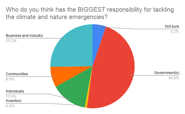 One of the strongest messages emerging from the response data is that young people believe governments have the biggest responsibility for tackling the climate and nature emergencies.