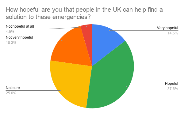 Only a little over half of responses sent a message of hope around being able to find a solution to the climate and nature emergencies, and that we can stop species loss.