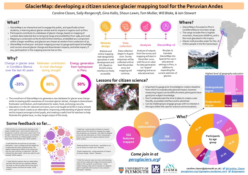 So the age of the virtual conference is still very much upon us, and later this week I’ll be presenting some initial data on participation with our citizen science tool for mapping glacier change in the Peruvian Andes – ‘GlacierMap‘. The poster is being presented at the International Glaciological Society’s annual British Branch meeting, but so non-attendees can take a look too, you can find a copy of my poster here!