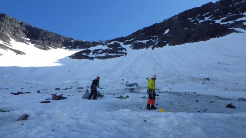 On the 15th March 2012 a Royal Norwegian Air Force Lockheed Martin C-130J Super Hercules aircraft crashed into the western face of Kebnekaise (Sweden’s highest mountain) in Lapland, during a military exercise. In addition to five fatalities, the crash deposited some 11000 litres of kerosene jet fuel across the mountain wall, snow and ice, which was then further distributed following a large avalanche triggered by the crash. Debris from the crash has been found on Storglaciären, Björlings glaciär, and near the summit of Kebnekaise, but the majority of debris and fuel was deposited on Rabots glaciär, and the pollution was not subject to any immediate decontamination efforts. While much of the aircraft debris has now been removed during clean-up exercises by the Swedish Military (Figure 1), little was known about the fate of the hydrocarbon pollutants.